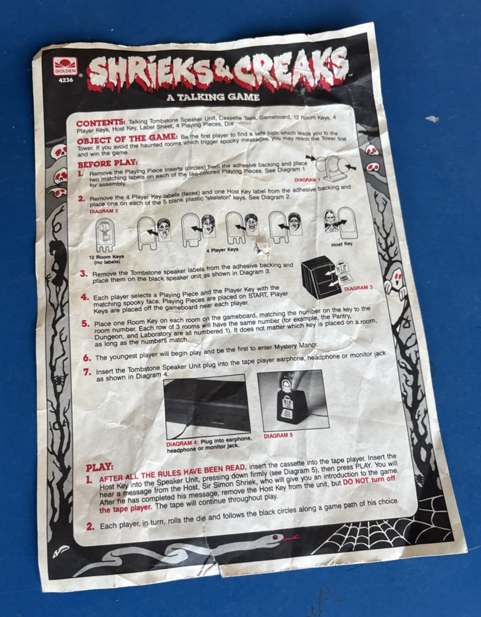 - Shrieks Creaks Talking Horror Board Game Vintage 1988