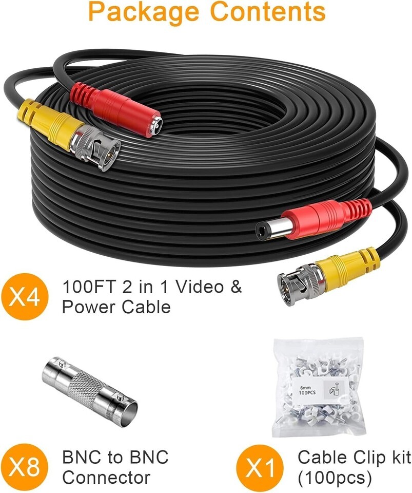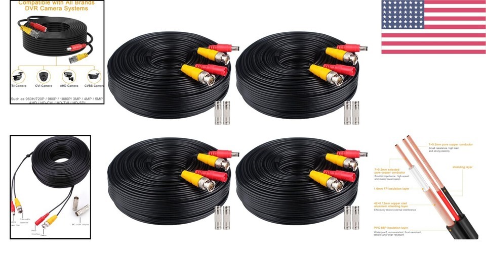 - Siamese 4x100FT BNC Cables - High-Quality Surveillance Video & Power Solution