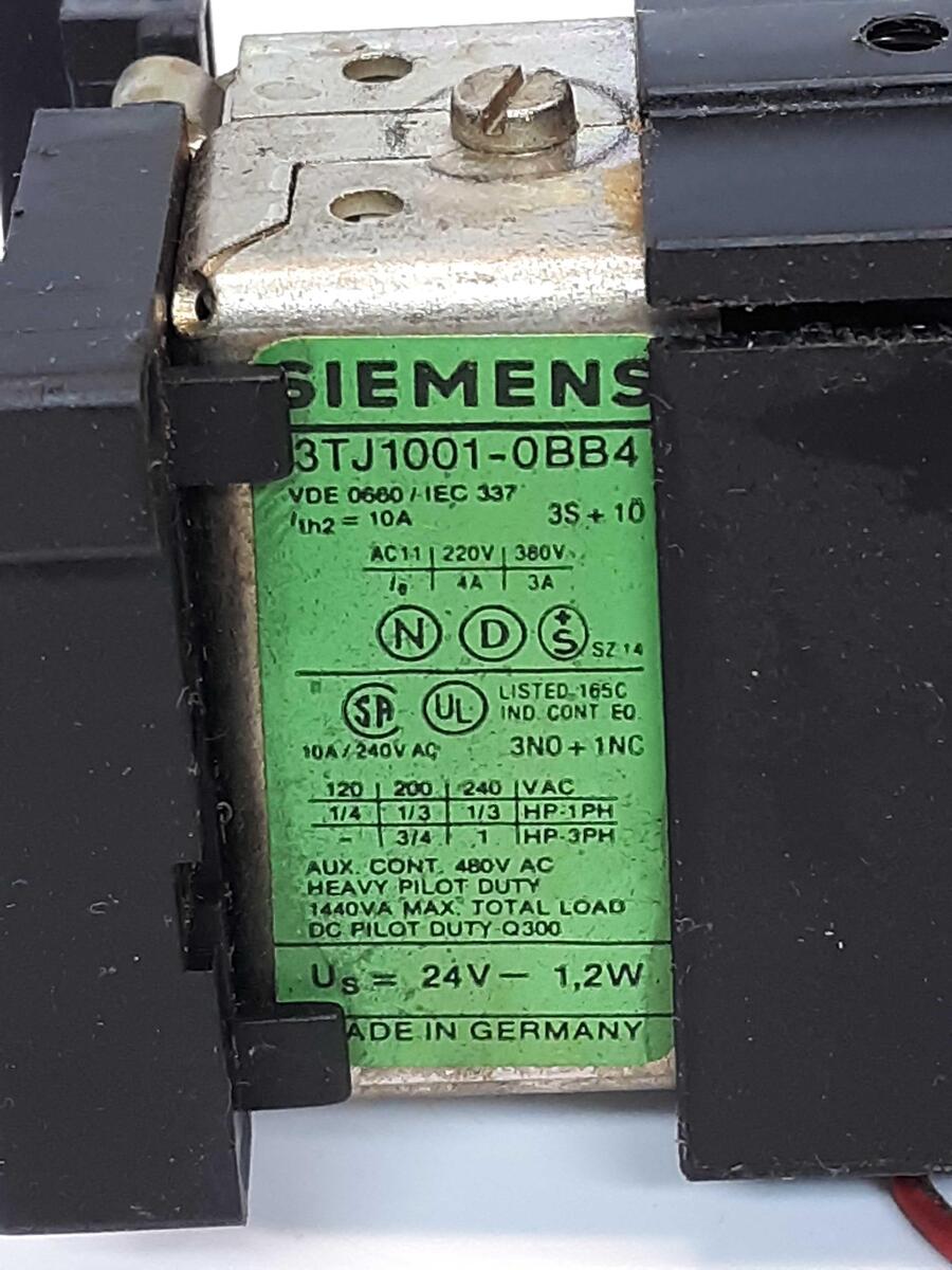 - Siemens 3TJ1001-0BB4 Contactor 480VAC 10A W/Murrelektronik LG-S01