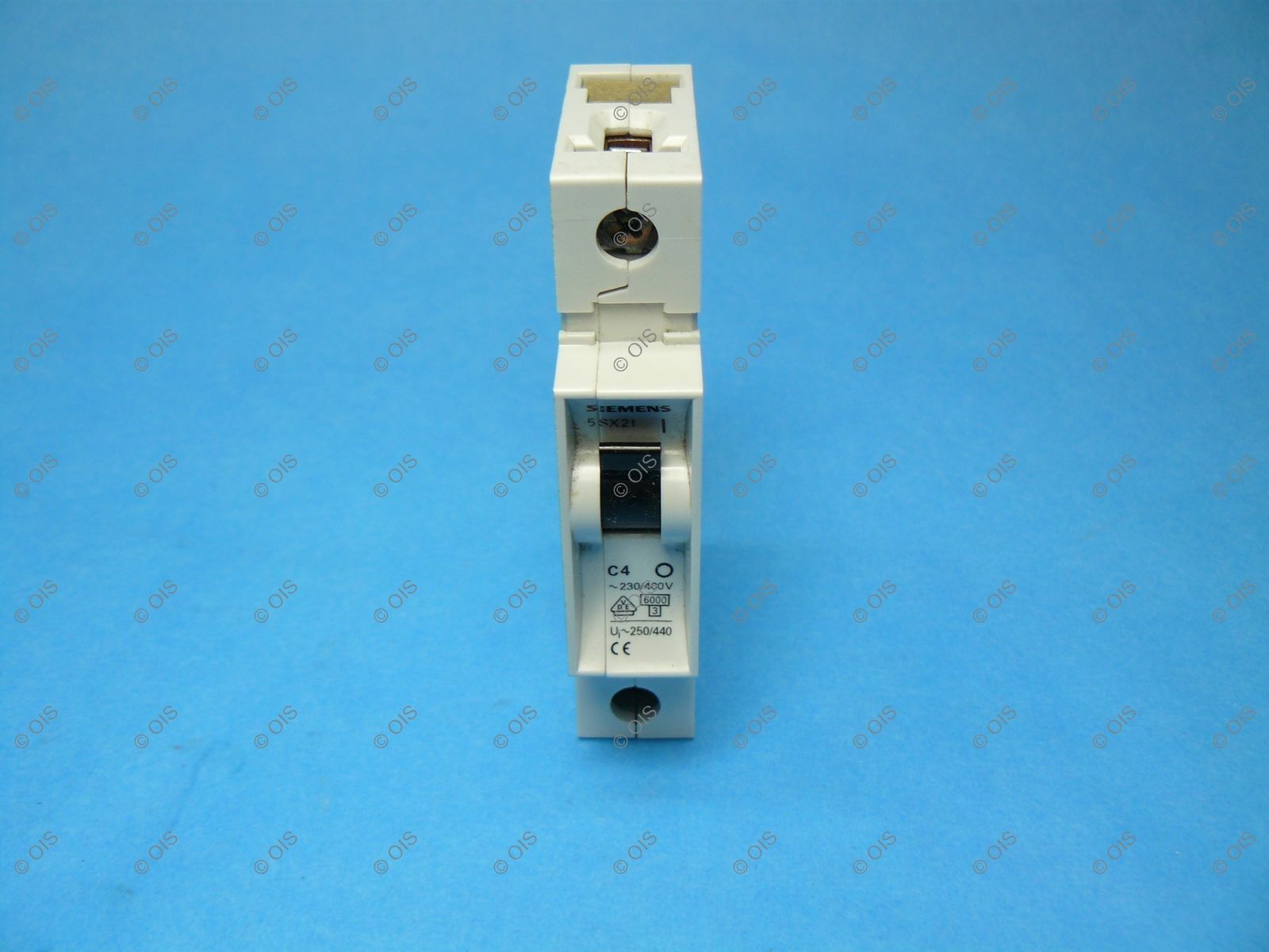- Siemens 5SX2-104-7 DIN Rail Circuit Breaker 1 Pole 4 Amps 277VAC 55VDC