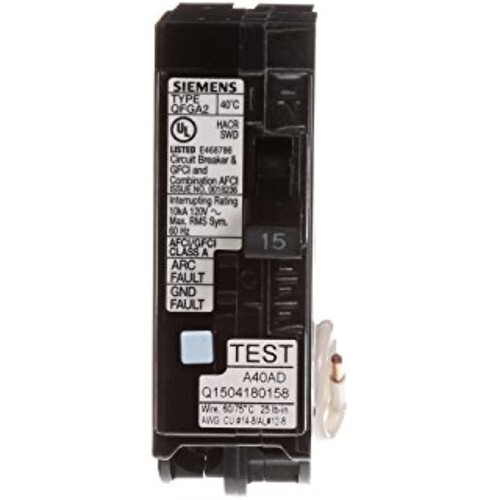 - Siemens Q115DF 15-Amp Afci/Gfci Dual Function Circuit Breaker, Plug on Load