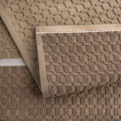 - Siena Tan Brown Tan Kitchen Towels Cotton Contrasting Color Border 2-Pc Gift NEW
