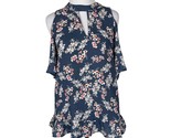 - Sienna Sky Floral Cold Shoulder Blouse Top Keyhole Detail Size Small Blue & Whit