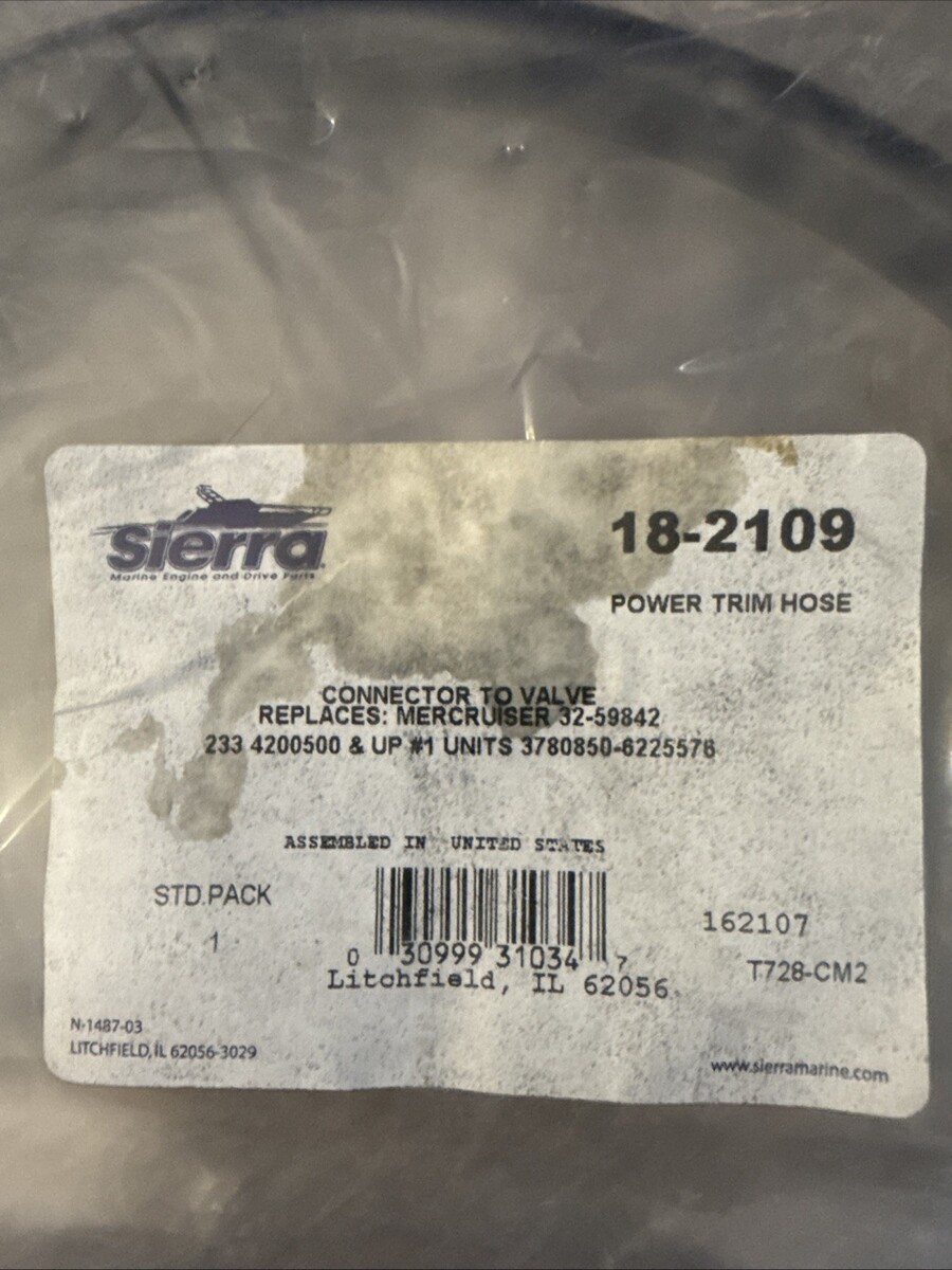 The Sierra Power Trim Hose #18-2109 is a high-quality boat part designed for sterndrive motors and components. Manufactured by Sierra, a reputable brand known for producing reliable marine products, this trim hose is specifically designed to meet the needs of boating enthusiasts. With a focus on durability and performance, the Sierra Power Trim Hose #18-2109 is a crucial component for maintaining the trim and tilt functionality of your boat's stern drive motor.