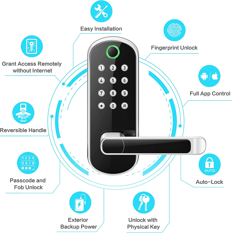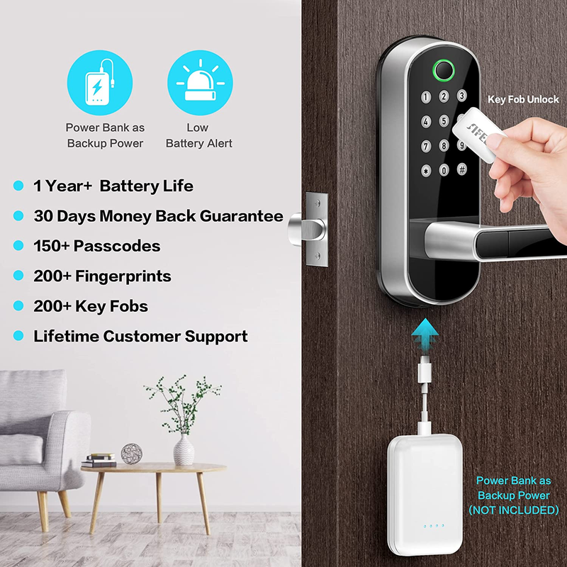 Store New Arrivals Add to Favorite View Feedback Contact Sifely Keyless Entry Door Lock, Keypad Door Lock, Keyless Door Lock, Fingerprint Door Lock, Biometric Door Lock, Keypad Entry Door Lock, Passcode Code Door Lock, Digital Smart Door Lock (Smart Lock) Description Item model number Sifely S3 Style Smart Handle Pattern Sifely Smart Lock Control Method App Warranty Description One Year Product Warranty Batteries Included? No Usage Fingerprint and Keypad Smart Lock Controller Type Remote Control Batteries Required? No Finish Satin Nickel Brand Sifely Material Zinc Type of Bulb LED Item Dimensions LxWxH 7 x 3 x 1.12 inches Finish Type Satin Nickel Manufacturer Sifely Item Package Quantity 1 Number of Handles 2 Item Weight 3.45 pounds Size Sifely Latch Lock Type Keypad Special Features Passcode Unlock, Fingerprint Unlock, Fob Unlock, Key Unlock and Smartphone Unlock Special Feature Passcode Unlock, Fingerprint Unlock, Fob Unlock, Key Unlock and Smartphone Unlock Part Number Sifely Smart Lock Color Silver Shape Rectangular Voltage 5 Volts (DC) Included Components Mounting Plate, Rubber Gasket, Face Plate, Back Plate, Bolt Assembly Product Dimensions 7 x 3 x 1.12 inches Number Of Pieces 16 [Rental Hosts Homeowners] Sifely smart door lock is a great solution for airbnb short-term rental hosts, rental property management, and self-housing resident. Generate passcode remotely and share it to your visitors. [Multiple Ways To Unlock] Advanced 5-in-1 Keyless Entry Smart Door Lock: Fingerprint + Code + Fob + Smartphone + Key. [Easy Installation] Easy to install in minutes with just a phillips screwdriver. No extra drills needed. No locksmith needed. Door handle is reversible for both left and right handed doors. Due to lock size, it may interfere with screen doors. [Remote Control] If paired with Sifely WiFi Gateway (Optional Add-on, Sold Separately), you can lock/unlock your smart door lock anywhere anytime, set up codes remotely and check real-time access logs. [Satisfaction Guaranteed] App/Software is free to use forever. No hidden charges or long-term costs. 30-day money back guarantee, 1-year product warranty and a lifetime customer support following the date of purchase. Product Description Quality Features Designed for Ease Code Versatility for Your Needs The lock can store 200+ codes and 100 fingerprints. Between Permanent, Timed, Recurring, and Custom codes, you can generate the code that is right for you! Most codes apart from custom codes can be generated remotely! Custom codes need the Sifely Gateway to be generated remotely. Auto-Lock Enabled! Forget to lock on the way out? No worries, auto-lock will lock it for you. Don?t want it to lock behind you? We got you covered, enable passage mode for seamless entry and exiting during the schedule you choose! Active Feedback "Unlocked", "Locked", "Battery Level Low" and much more! Our lock lets you know what is happening, keep out of the guesswork of trying to figure out what?s going on and live reassured. Convenient and Long Lasting Powerbank Compatible Even if you miss the low battery notifications, use a powerbank to power it up via a small power slot and get yourself inside. Works with Smart Speakers Our lock combined with the Sifely Gateway provides the most convenient experience by simply asking your smart speaker to lock or unlock our lock. Low Energy Usage With 4 AA batteries (not included) go up to a year without worrying about the batteries and learn to enjoy the convenience! For Homeowners, Business Owners, and Managers Alike! Instantly, Easily Generated Codes! Help manage your rentals with convenience remotely (with Sifely Gateway) for your guests and tenants. Whether it's creating a code for a guest's stay or a one time code for a visitor, our lock gives you convenience when you need it! Access Granted! Add an extra layer of monitoring and convenience to your business for you, your employees, and customers. Own a small business or a large company? Our lock can be part of your peace of mind with easily retrievable access logs and a many ways to share access quickly with your customers or employees. Manage Access and Monitor Activity! Enhance your operations with reliable and connected access by using our webportal in combo with Sifely Gateway. If you run a small motel, vacation rental, or manage a building complex, take advantage of constantly connected locks to issue or revoke access via Fob, smartphone, passcode instantly with a few clicks or just a few swipes! Sifely Webportal For managing your locks all in one place Mass assign or delete codes to multiple locks with a few simple clicks. eKeys too! Settings such as Passage mode can all be changed from the convenience of your computer. Enhanced Monitoring Download and export access logs right on your computer. Be on top of when knowing there was an entry and how. You can also check other details such as the battery level and lock/unlock status from the webportal. At no charge to you! Using the webportal is completely free! All you need are some Sifely Locks, Sifely Gateways, and a Sifely Smart Lock App Account and you are ready to get started. Manage from a familiar platform Manage all the locks on your Sifely Smart Lock App on your computer. Log in with your app credentials. Using the webportal is free! All Sifely locks can be connected via the Sifely Gateway. Lock Mechanism Type Lever Handle Lock Deadbolt Lever Handle Lock Lever Handle Lock Compatible with Alexa Google Assistant With Sifely Gateway (not included) With Sifely Gateway (not included) ? With Sifely Gateway (not included) Operational Temperature Range 14F to 158F (-10C to 70C) 14F to 158F (-10C to 70C) 14F to 158F (-10C to 70C) 14F to 158F (-10C to 70C) IP Rating IP65 IP65 IP65 IP65 Ways to Unlock Fingerprint, Passcode, Fob, Wireless Key Fob, App, and Key Passcode, Fob, Wireless Key Fob, App, and Key Fingerprint, Passcode, Fob, Wireless Key Fob, App, and Key Fingerprint, Passcode, Fob, Wireless Key Fob, App, and Key