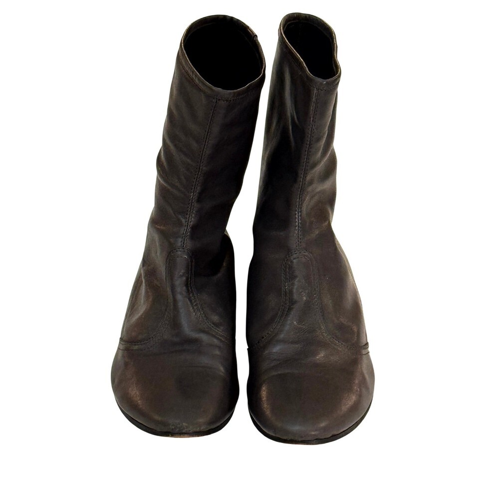 - Sigerson Morrison Gray Leather Flat Ankle Boots Women 7.5B Italy Made Vero Cuoio