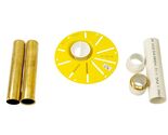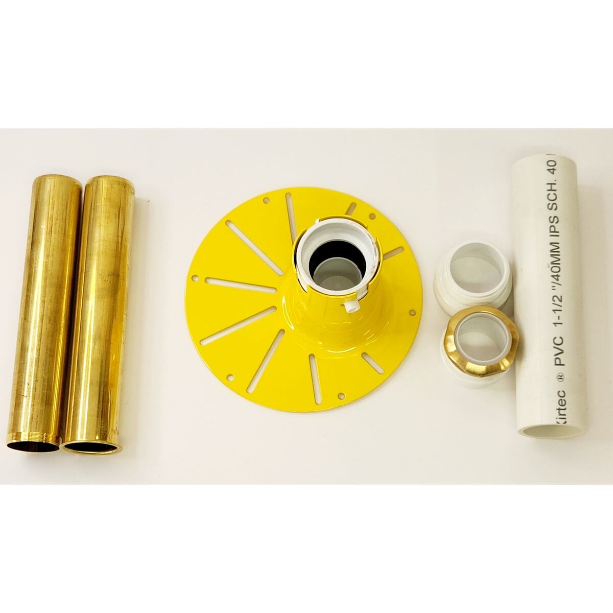 Includes: drop-in drain and lubricant, nut, gasket, adaptors 1-1/2" female and 1-1/2" male, brass tailpiece and threaded brass tailpiece and PVC pipe.