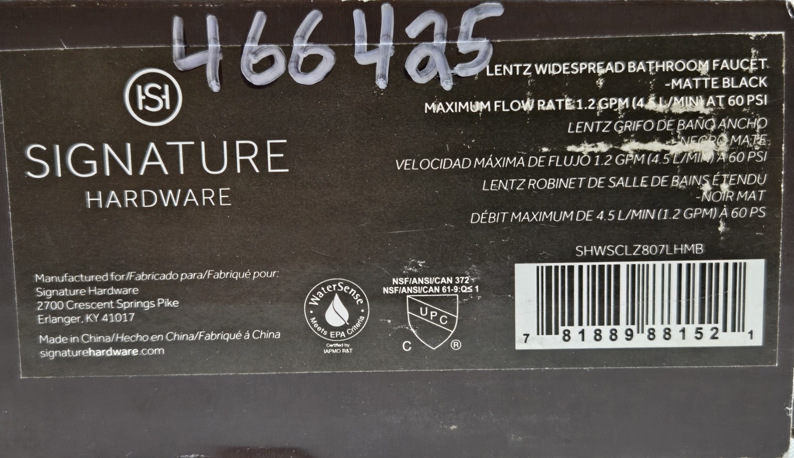 - Signature Hardware 466425 Lentz Widespread Bathroom Faucet Less Handles - Black