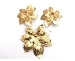 Signed Sarah Coventry Vintage Book Piece "Silvery Maple" Brooch/Ears,Gold 1960