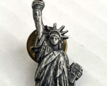 - Signed Statue Of Liberty Lapel Pin New York KS Co Pewter Rhinestone Vintage 1"