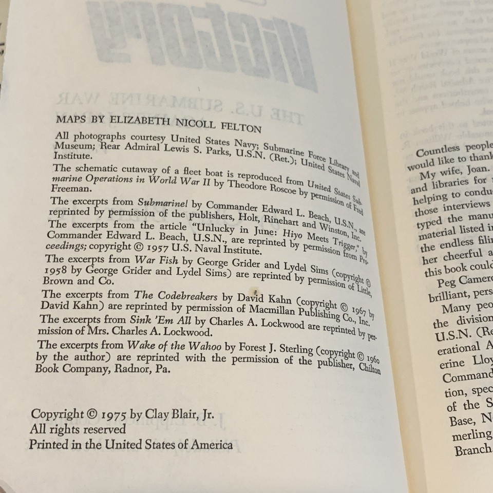 - Silent Victory The U.S. Submarine WW II Against Japan - Clay Blair – Vol 1&2,HB
