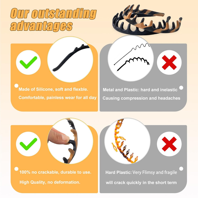 - Silicone Headbands for Women Non Slip Comb Headband with Teeth Non-Crackable Hai