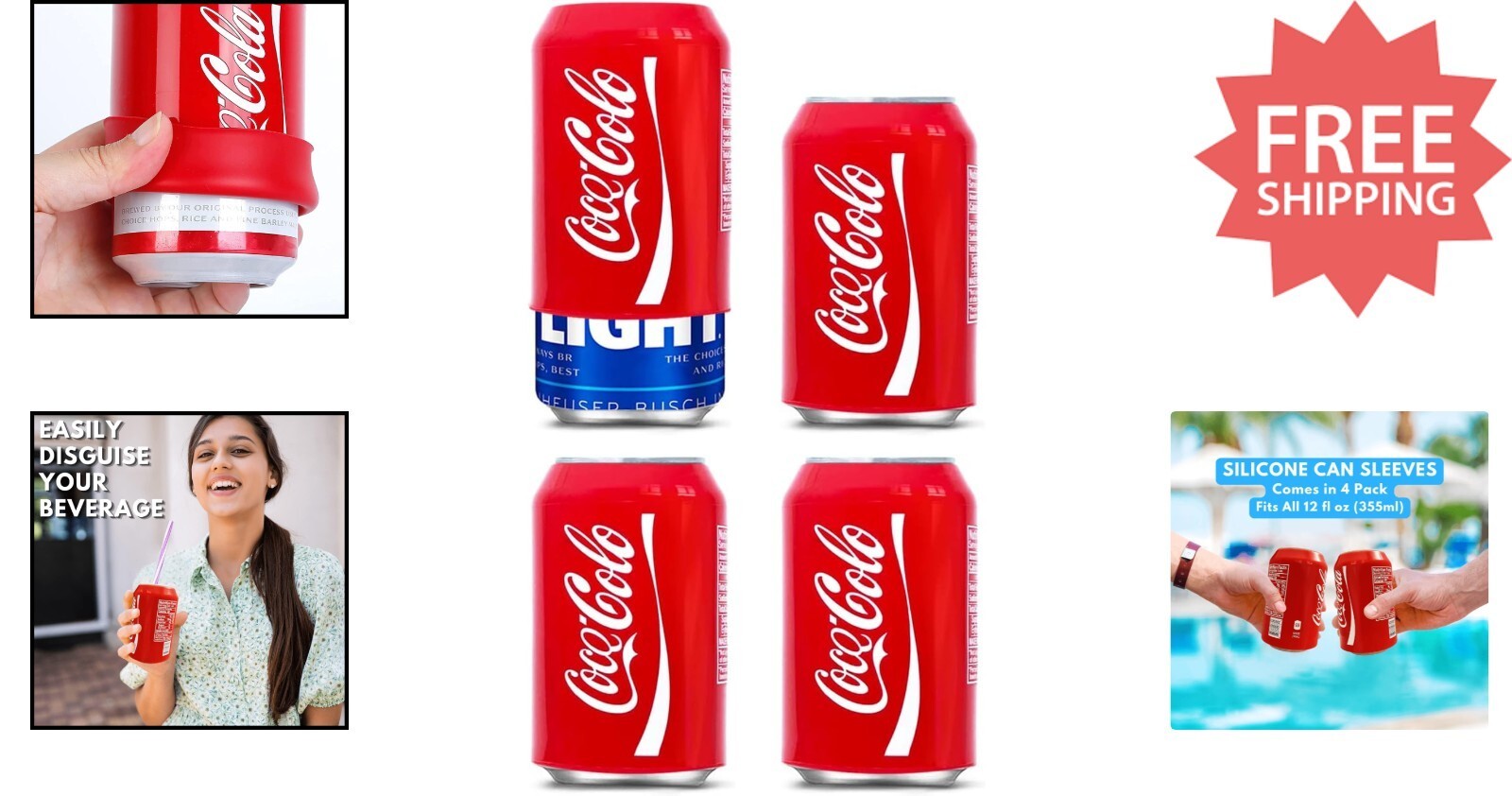 Transform your beverage experience with our all-in-one set of four silicone can covers. Designed to fully conceal any 12 fl oz (355ml) cans, these sleeves let you discreetly mimic popular soda brands at picnics, BBQs, fishing trips, parties, and outdoor gatherings. Easy to slide on and off, they provide a snug fit for any standard can. Elevate your outdoor events with convenience and fun ? and keep your drinks undercover! To ensure fast and reliable delivery, we work with multiple fulfillment partners and suppliers. Depending on availability and location, your order may ship from different warehouses or arrive in packaging that varies from item to item. Tracking details are typically provided shortly after shipment, and customer satisfaction remains our top priority. Please note that due to carrier policies and regional regulations, certain items may not be eligible for delivery to specific states or territories.