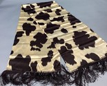 Silky Cow Print Women?s Scarf - 36x10?. There is 1 stain on one of the brown spots and there are what looks like a few pinholes in the material. Please check out the pictures thoroughly so you can see what I mean.