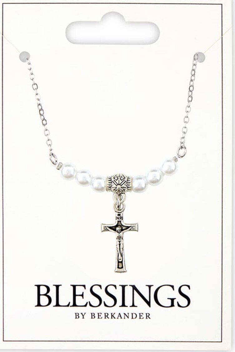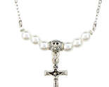 Silver 1" Crucifix Necklace with Faux Pearls, New #AB-353-R2