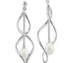 - Silver 7-8mm White Rice Freshwater Cultured Pearl Post Dangle Earring QE13852
