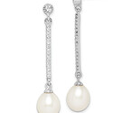 - Silver 8-9mm White Rice Freshwater Cultured Pearl and CZ Post Dangle Earrings Q