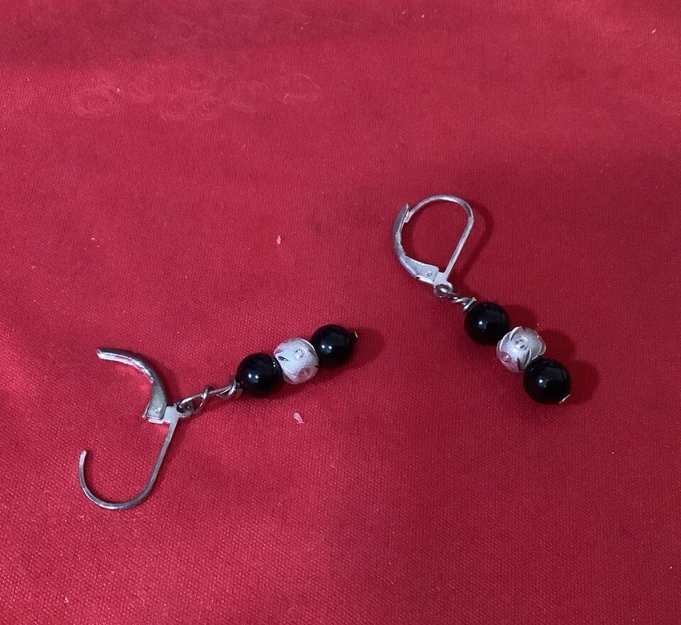 - Silver & Black Bead Dangle Earrings