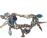 - Silver & Blue Beaded Charm Bracelet With Fish & Pointed Metal Pendants Jewelry