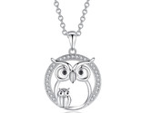 Elegant Momma and Baby Owl Necklace with the circle embedded with many gemstones jewelry.