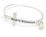 Freshwater pearl inspired charm religious inspiration cross wire bangle bracelet with the words mom's blessing on the cross. You will love this bracelet, and so will anyone else who sees it.