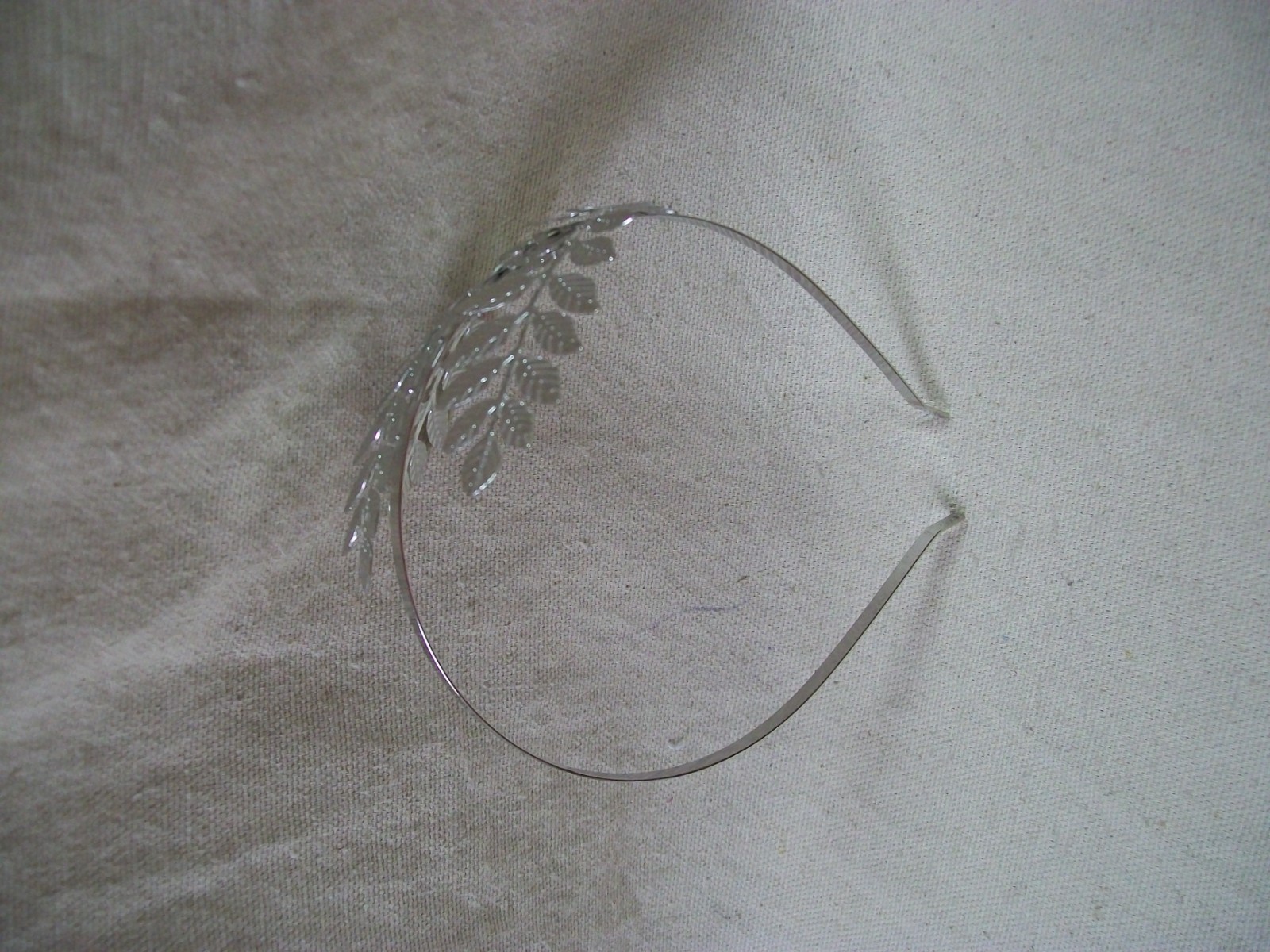 ONE SIDED SILVER LAUREL LEAF BUNCH SPRAY HEADBAND