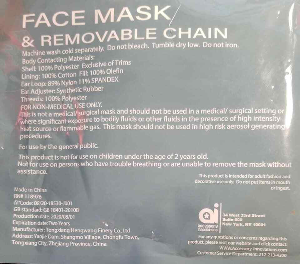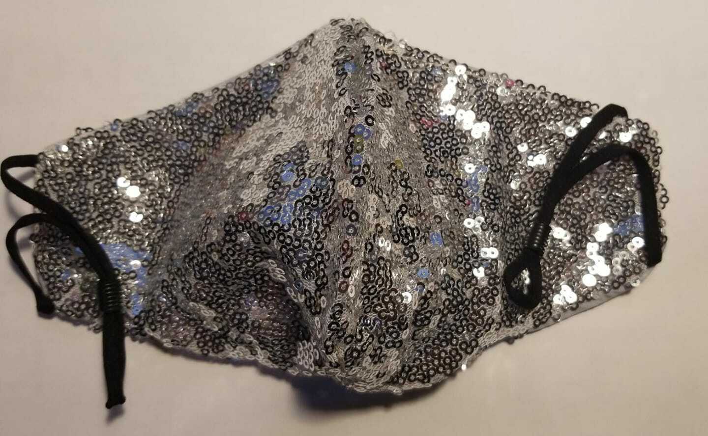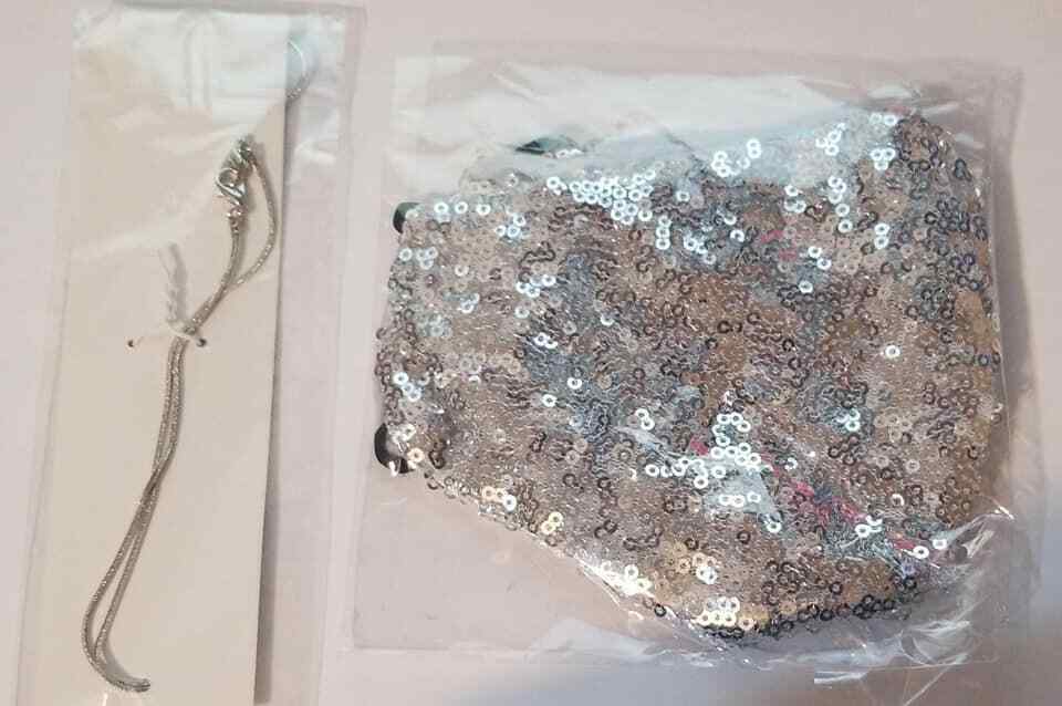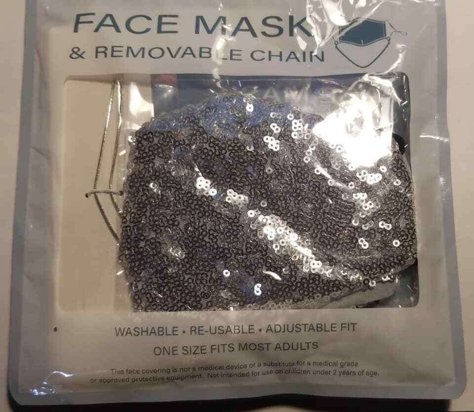 - Silver Sequins Fashion Face Mask & Removable Chain (LOC TUB 712-1)