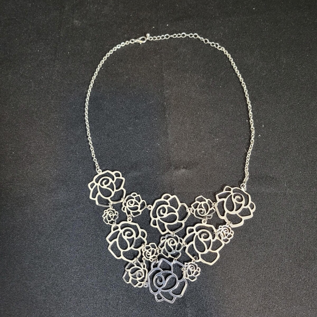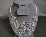 - Silver Tone Laser Cut Stacked Roses Statement Necklace Costume Jewelry