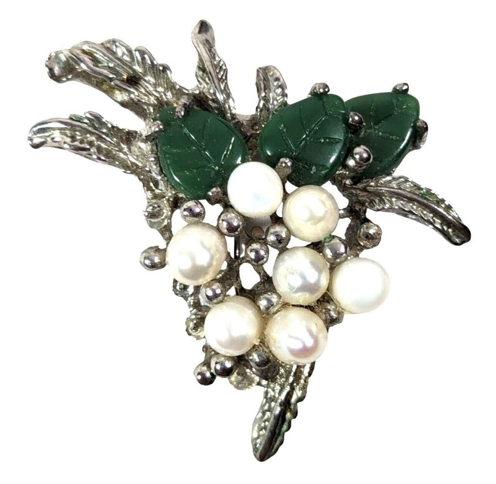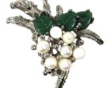 - Silver Tone Pin Brooch Grape Cluster Faux White Pearls Green Leaves Vintage 60's