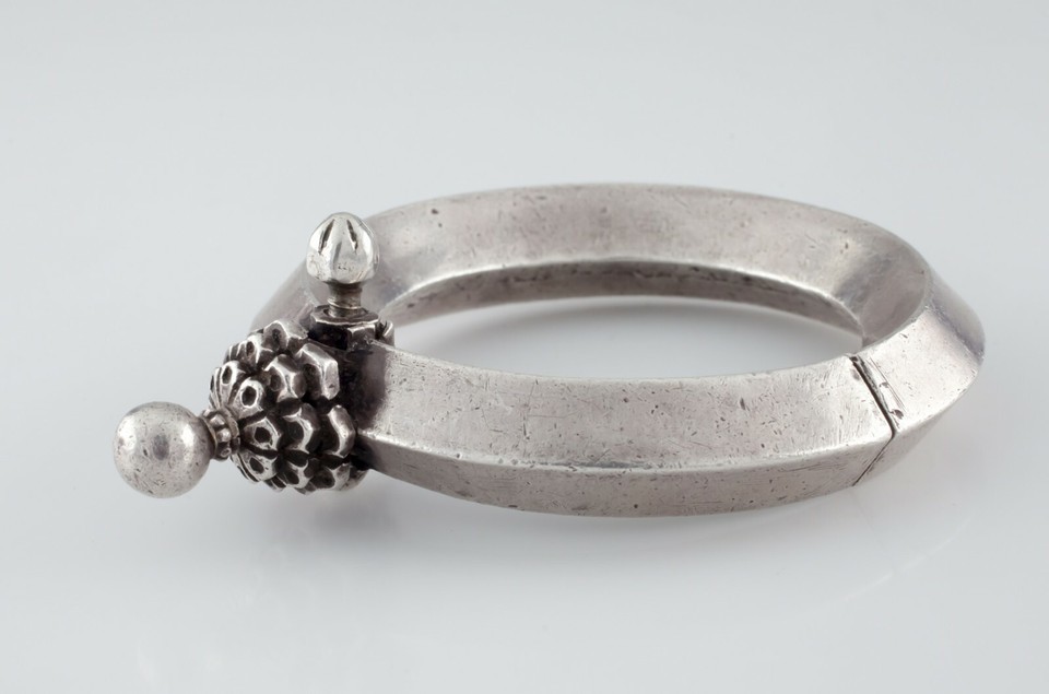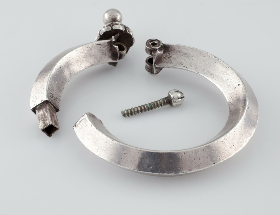 - Silver Vintage Indian Bracelet w/ Screw Clasp and Hinge Gorgeous!