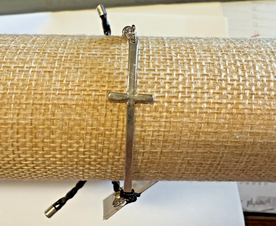 Silver tone Cross Bracelet, with adjustable cord ,New #Gftshp-39