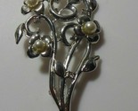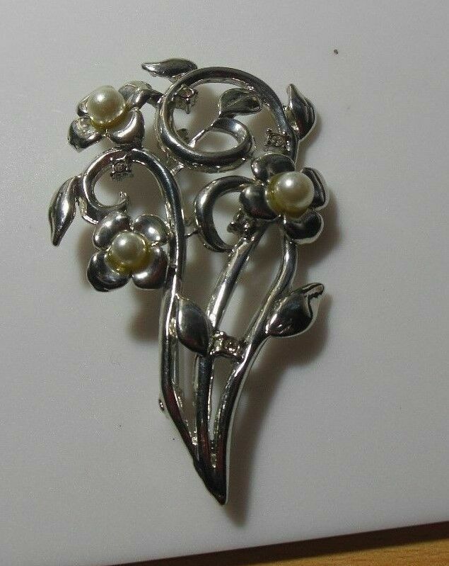 - Silver-tone Faux Pearl Clear Rhinestone Floral Brooch