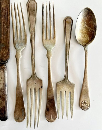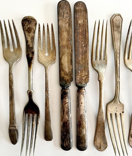 Lots of patina on these. 7 forks, 2 butter knives, 1 spoon