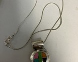 - Silverworld Sterling Silver Multi-Stone Inlay Round Slide Pendant & 18” Chain