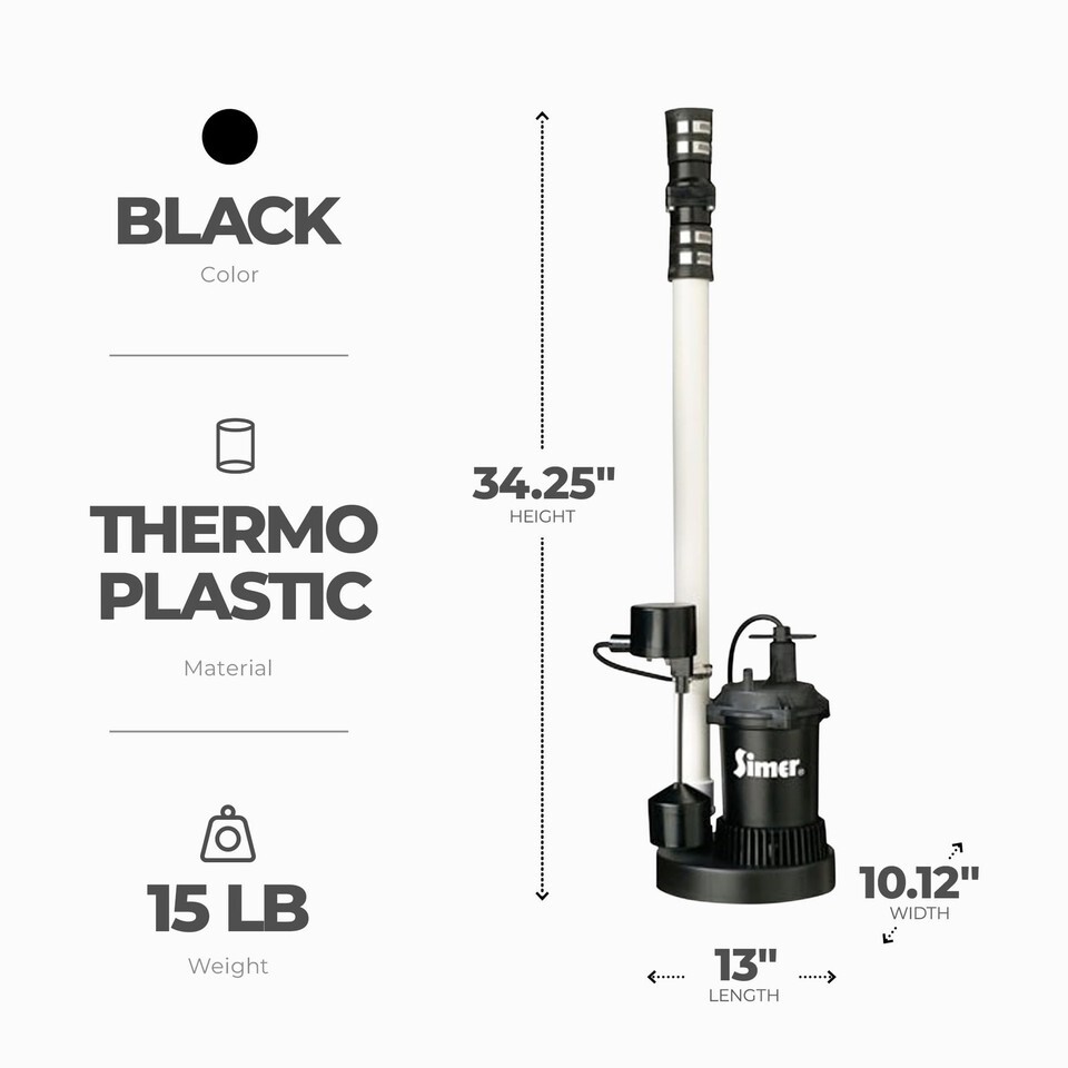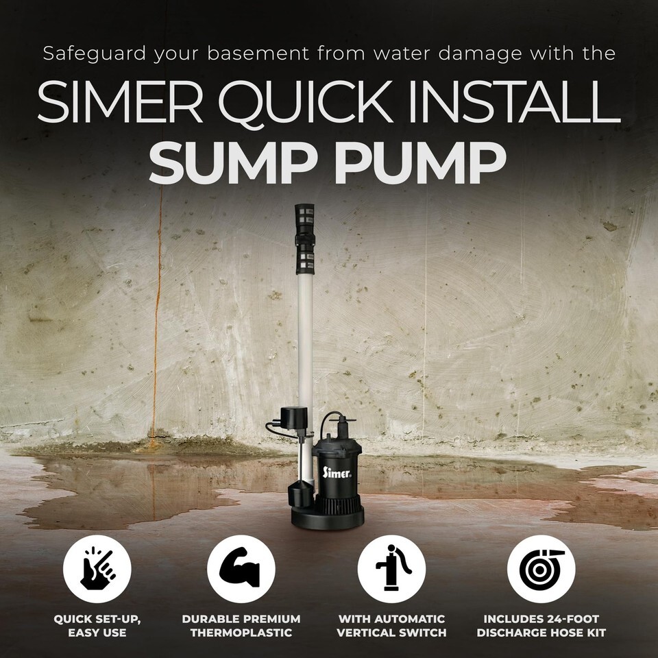 - Simer 2944RP 1/2 HP Quick Install Sump Pump