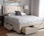 - Simms Light Beige Fabric Upholstered Queen Size Storage Bed