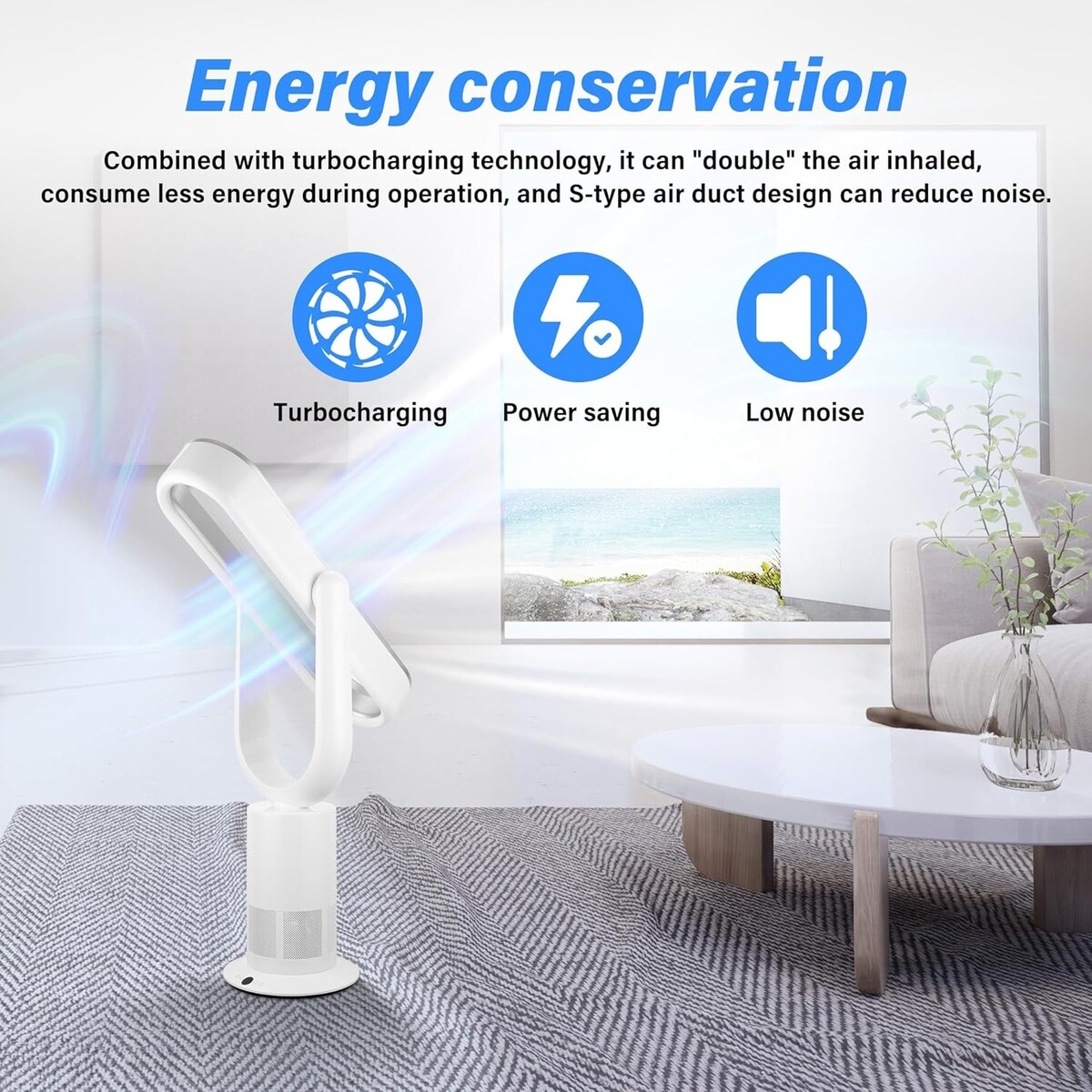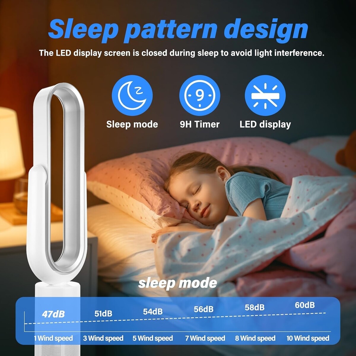 [BETTER SLEEP] When the air in a room is too thin, it can be harmful to your health. A good fan helps to circulate the air in your room and increase the airflow, which can help to decrease any respiratory issues you may be experiencing. It can also help to improve your sleep, making it safer to spend more time in bed. This bladeless fan is quiet with noise lower than 60 DB when using, also, it can help improve the quality of indoor air. Try this bladeless fan to improve your sleep.