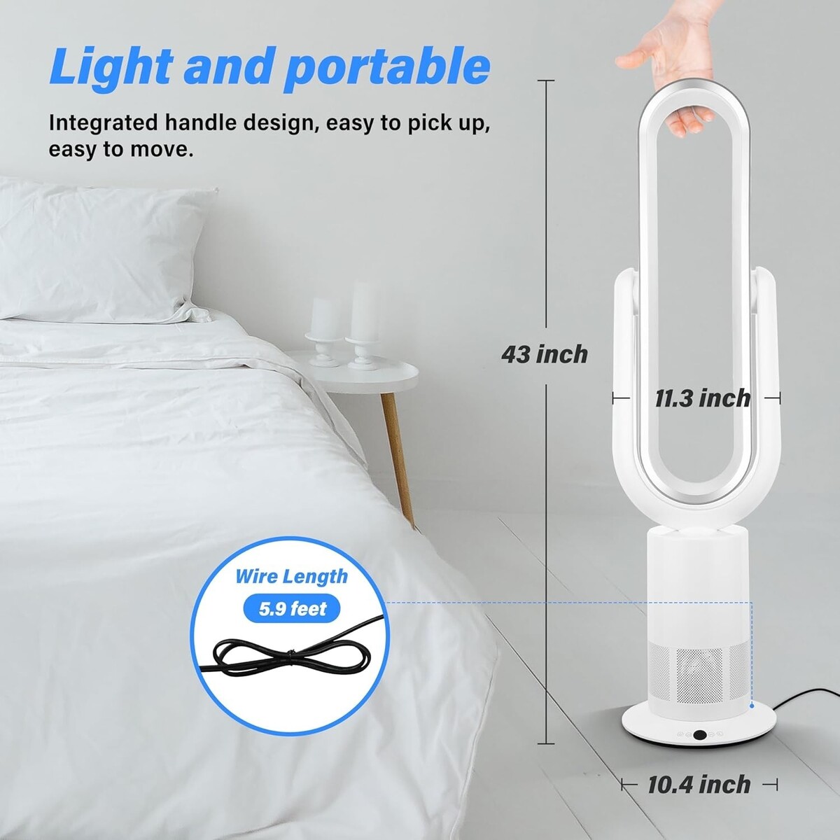- Simple Deluxe 43 Inch Bladeless Tower Fan with Remove Cooling Remote Tilting