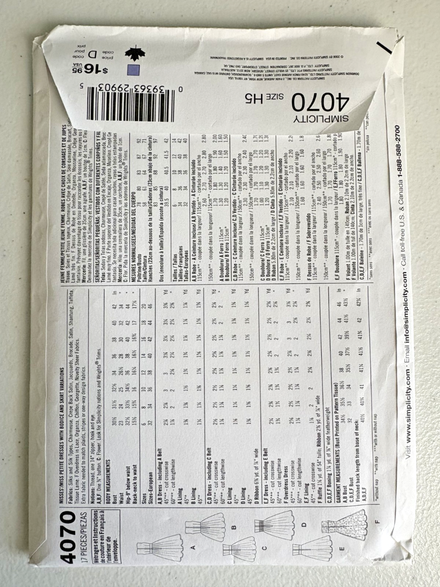 - Simplicity 4070 Pattern Size H5 6,8,10,12,14 Dress Uncut 2006