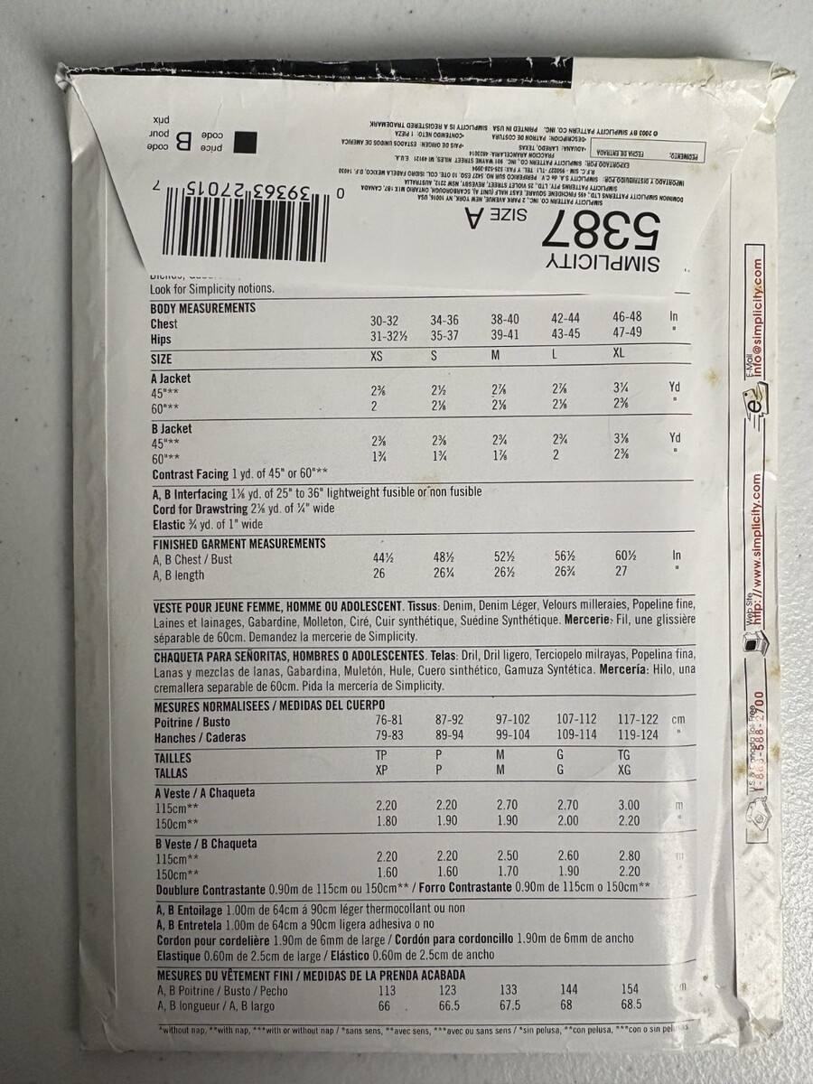 Simplicity 5387 It's So Easy Pattern Size A XS-XL Uncut Vintage 2003. This is a new, uncut pattern - UPC #039363270157 - See Photos for further description.