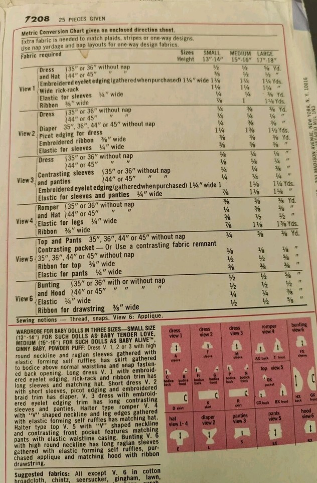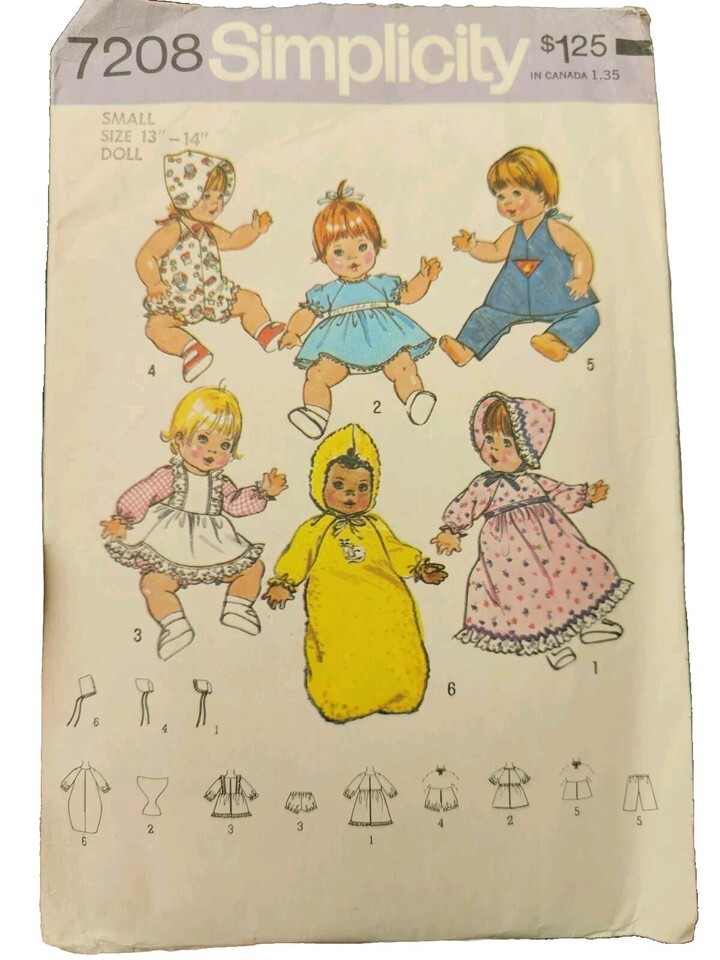 - Simplicity 7208 Size 13"-14" Doll Clothes 6 Patterns Dress Hat Panty Top Bunting