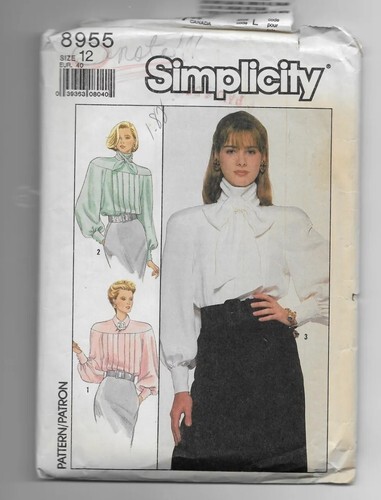 - Simplicity 8955 BLOUSE BUTTON BACK PLEATED YOKE front Size 12 uncut 1988