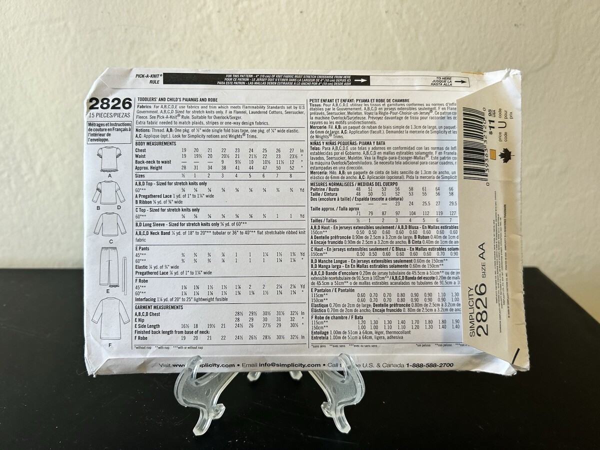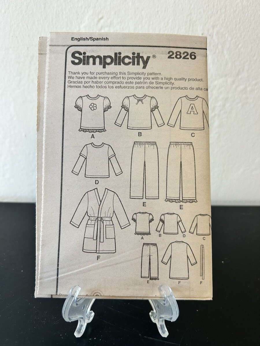 - Simplicity Pattern 2826 Pajamas & Robe Sz 1/2-1-2-3 2008