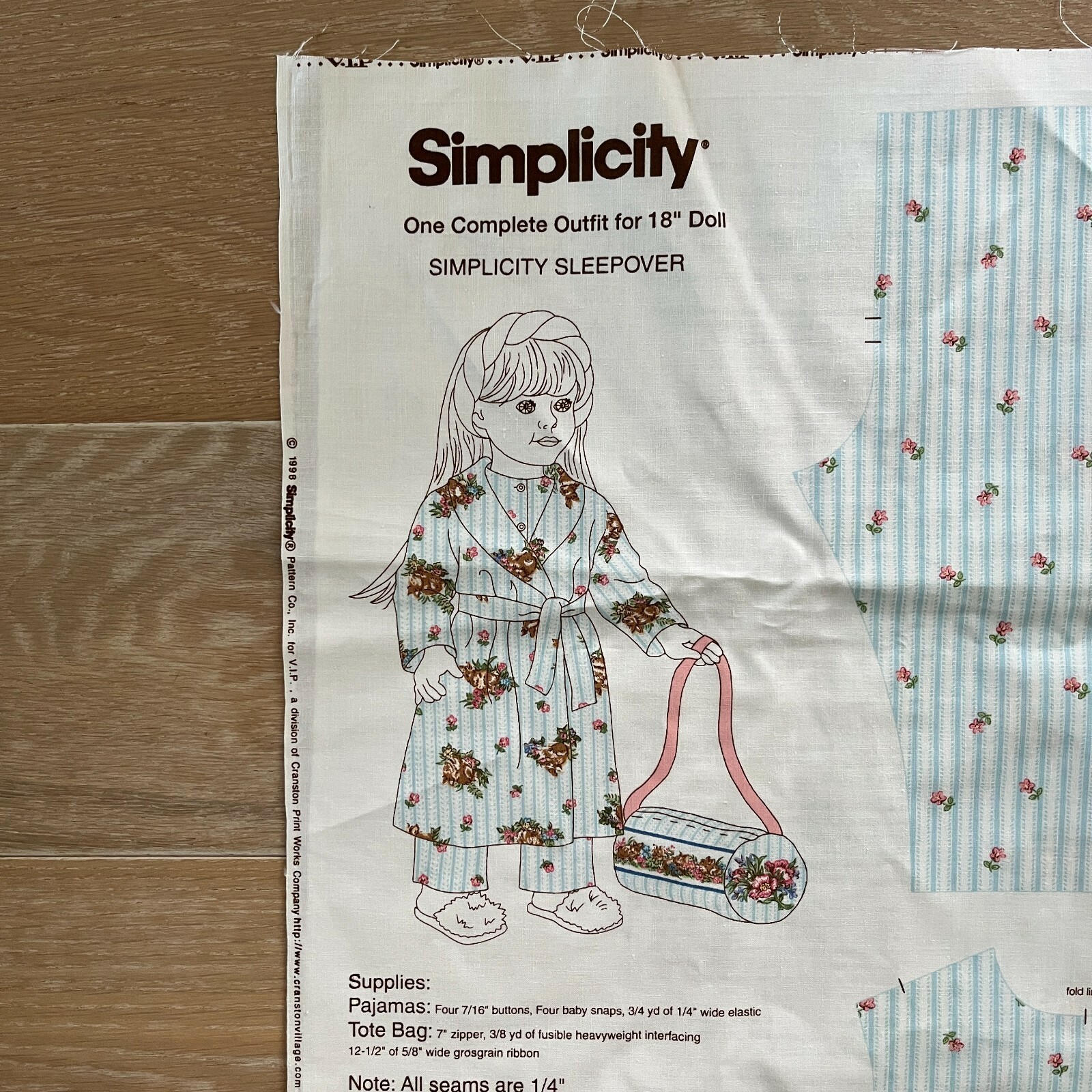 Simplicity Sleepover 18" Doll Outfit Craft Fabric Panel Pattern. Makes doll pajamas, tote bag, and robe. Full panel measures approx 36? x approx 60?. Comes as shown in my photos.