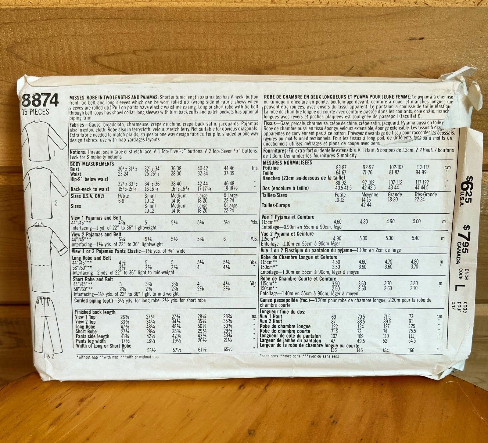 - Simplicity Vintage Home Sewing Crafts Kit #8874 1988 Robes