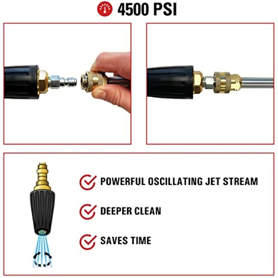 Faster and deeper cleaning action: The power washer turbo nozzle creates a strong jet of oscillating water that cleans faster than standard nozzles; It?s great at cleaning hard to remove dirt, grime, and debris