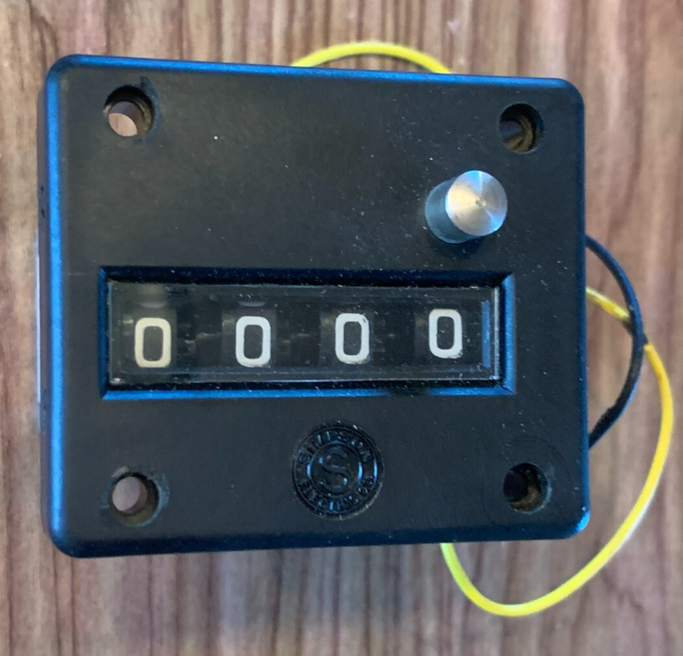 This vintage Simpson Model 104 Electro-Mechanical Counter (four numbers) is a reliable and efficient device that operates on 12 VDC power.