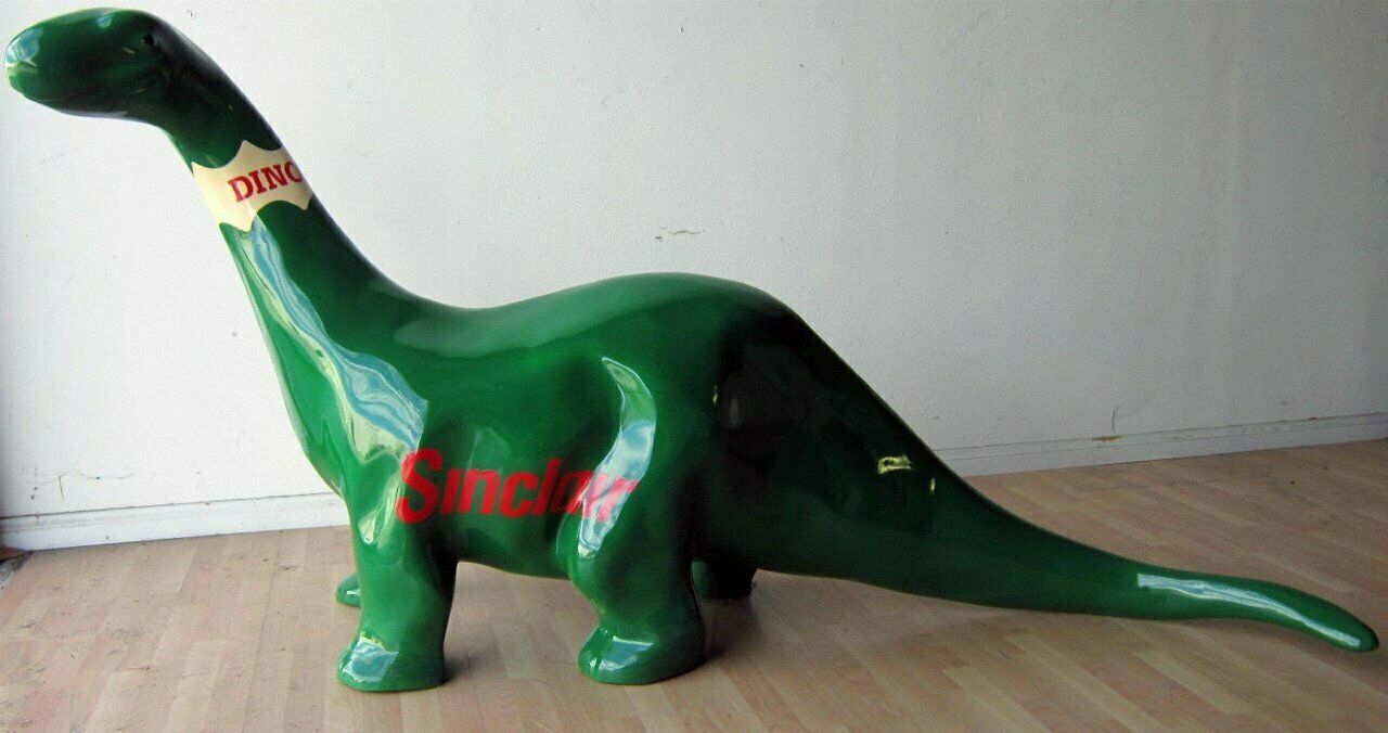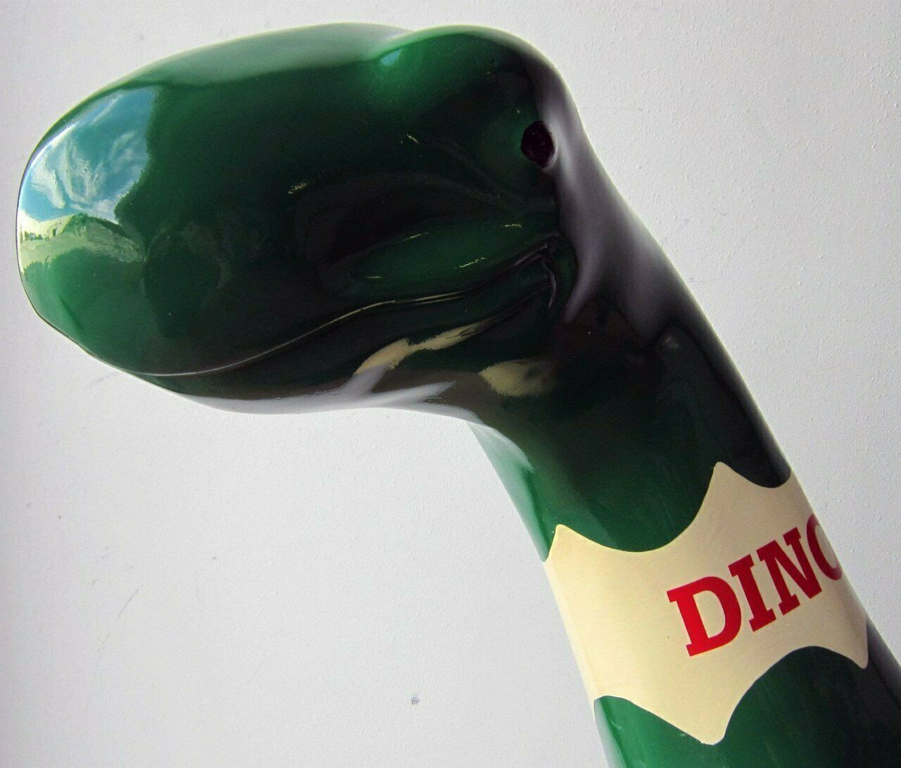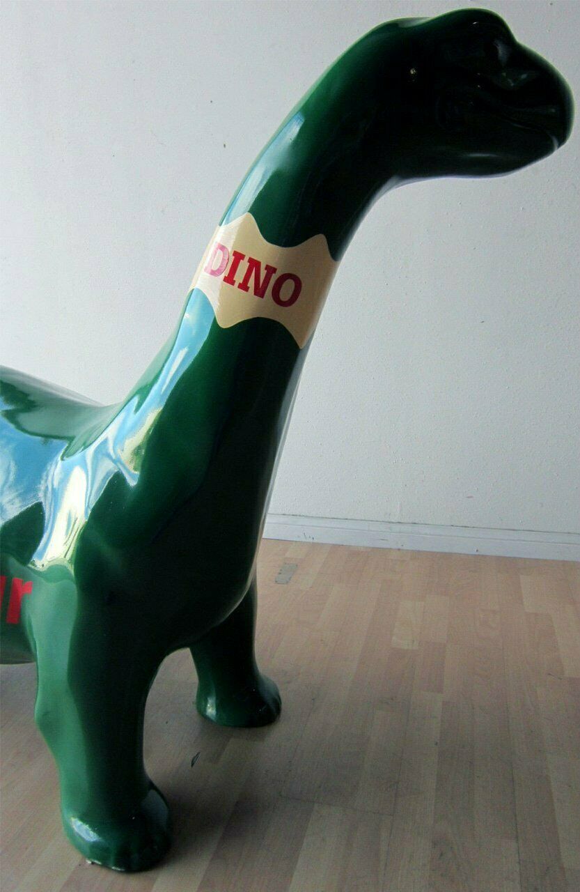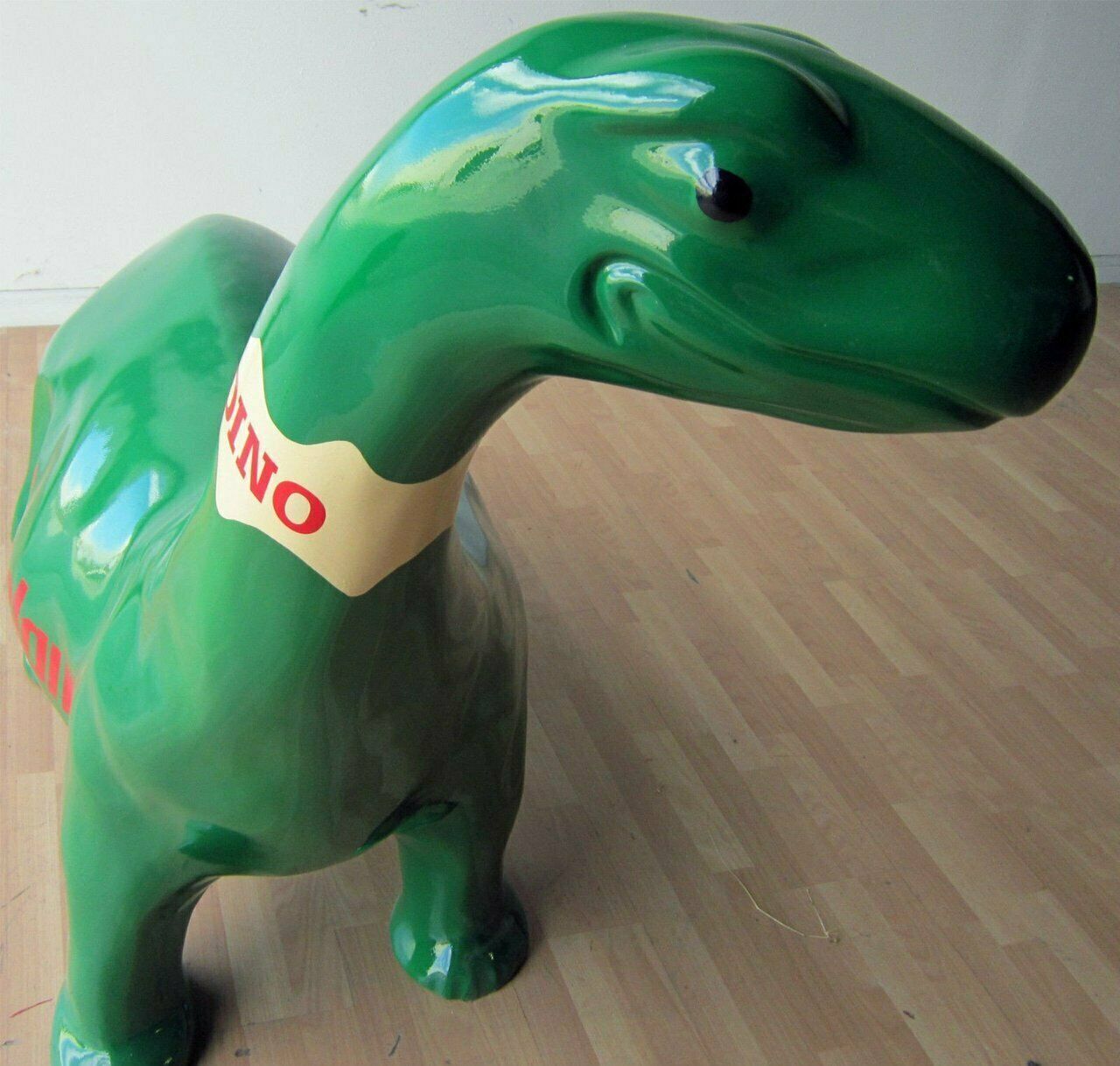 Fiberglass figure of Dino the dinosaur figure measures 100" long by 49" tall by 20" wide.