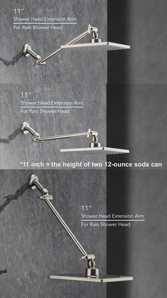 - Singing Rain 11 Inch Adjustable Brass Shower Head Extension Arm Nickel Brushed