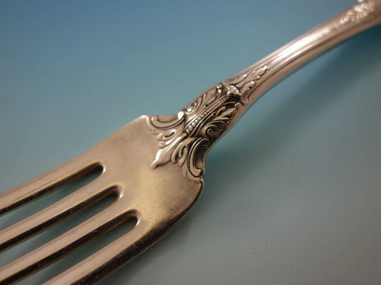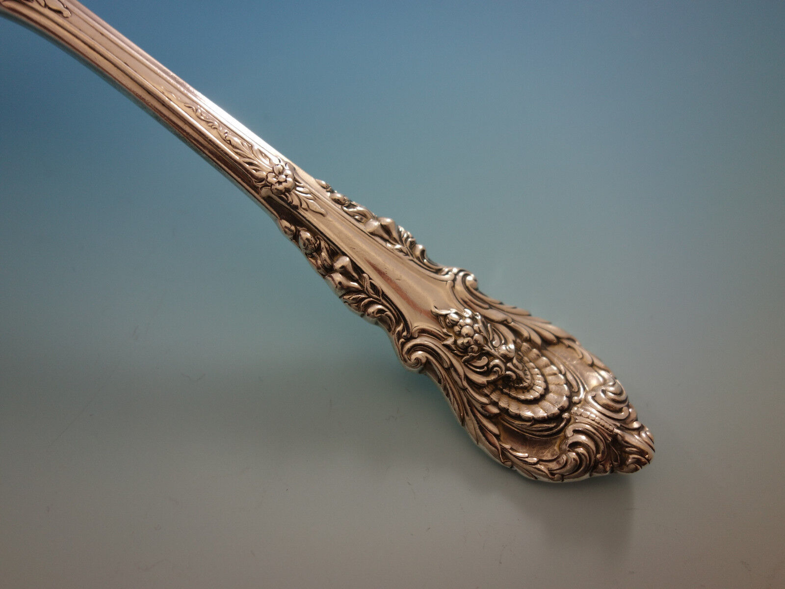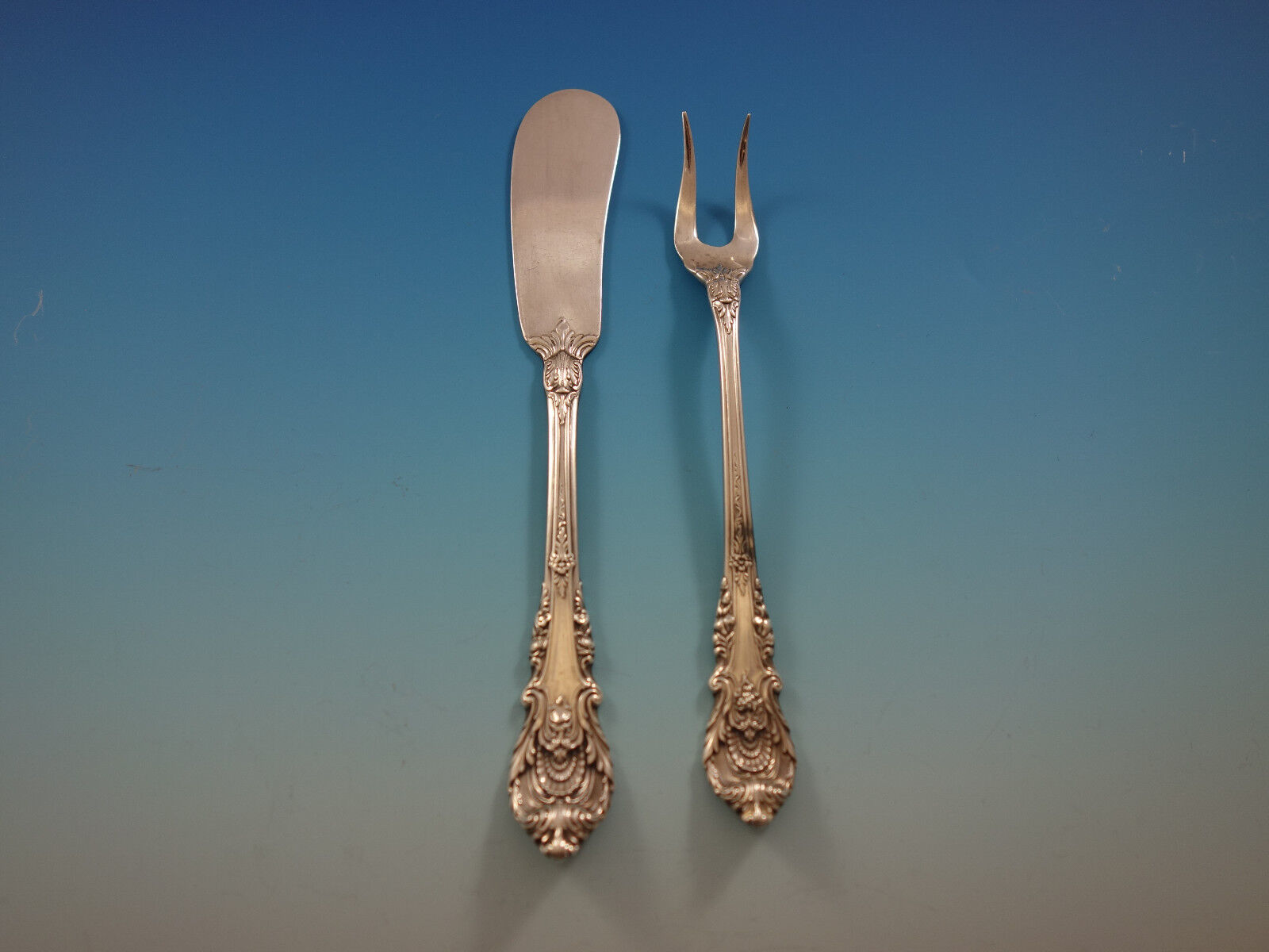A mood of grandeur is captured in this English Renaissance style pattern interpreted from the designs of architect Sir Christopher Wren. Earth's bounties are depicted through grape clusters on the knife, fruits on the fork and a rose on the spoon.
